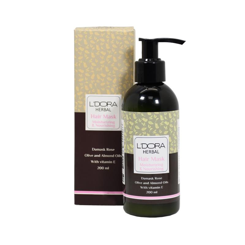 ماسک موی گیاهی لدورا هربال به تثبیت رنگ مو و ترمیم آسیبهای ناشی از رنگ مو کمک میکند. صمغ کتیرای بهکار رفته در آن به خوبی موهای آسیب دیده را تقویت و درمان کرده و ظاهری بسیار درخشان به آن میدهد. دیگر ماده مؤثر این ماسک گیاهی، عصاره رزماری است. این عصاره گیاهی به علت ویژگی ضدمیکروبی، ضدالتهابی و آنتیاکسیدانی خود، تأثیر فوقالعادهای در تأمین سلامت مو و جلوگیری از ریزش مو دارد. عصاره گلمحمدی نیز در ترکیب این ماسک وجود دارد. این عصاره گیاهی با افزایش جریان خون در پوست سر باعث تقویت فولیکولهای مو شده و به افزایش رشد مو کمک میکند. همچنین عصاره گلمحمدی به عنوان آبرسان عمل کرده و با رطوبترسانی به مو، نرمکننده فوقالعادهای برای آن به شمار میرود. روغن بادام نیز دیگر ترکیب شگفتانگیز این محصول است.